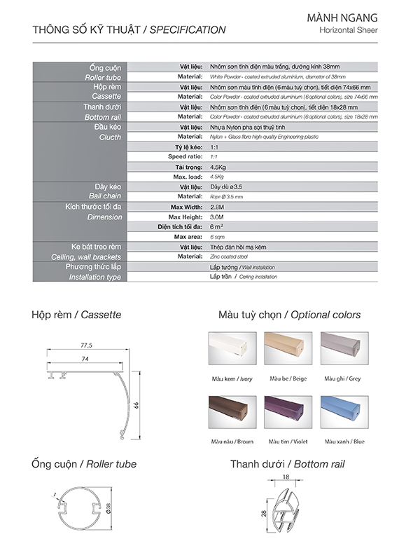 Đặc điểm: Công năng ưu việt với 2 lớp voan và một lớp vải, dễ dàng điều chỉnh ánh sáng khi xoay lật các lá vải Kiểu dáng hiện đại Hiệu ứng ánh sáng tinh tế. Hệ thống phụ kiện đồng màu thao tác dễ dàng. Độ bền cao.