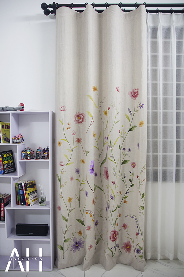 Một trong những yếu tố làm cho rèm vải linen trở nên đặc biệt là khả năng trang trí thêm các họa tiết vẽ thủ công. Những họa tiết độc đáo này không chỉ giúp tạo điểm nhấn cho không gian mà còn mang đến vẻ đẹp nghệ thuật và cá tính cho bộ rèm. Từ những họa tiết hoa lá mềm mại đến những đường nét hình học sắc sảo, rèm vải linen dễ dàng kết hợp với nhiều phong cách thiết kế nội thất khác nhau.